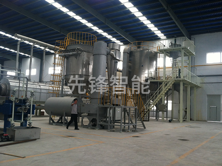 干燥采用自然风,自然风经过空气过滤器后,由风机鼓入空气加热设备内被加热,加热后的热风再经闪蒸主机热风分配器,分配成均匀、一定流速、流向的旋风。旋风与螺旋加料器加入的湿物料接触、碰撞,开始质热交换、分离等一系列的物理变化,使得物料与所含湿份分离,终达干燥。