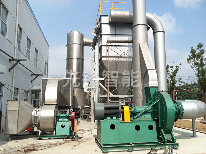 干燥采用自然风,自然风经过空气过滤器后,由风机鼓入空气加热设备内被加热,加热后的热风再经闪蒸主机热风分配器,分配成均匀、一定流速、流向的旋风。旋风与螺旋加料器加入的湿物料接触、碰撞,开始质热交换、分离等一系列的物理变化,使得物料与所含湿份分离,终达干燥。